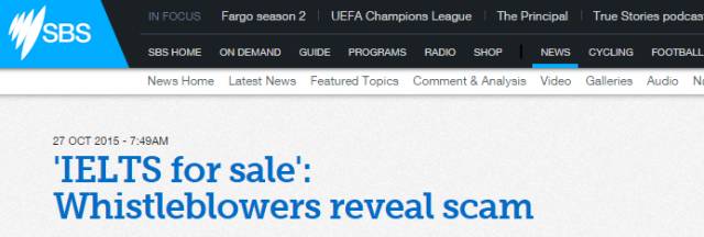 一名留学生对SBS说,与其花钱学习,还不如买假成绩。那些假的成绩单制作精致,连考官都难辨真假。他还说,要找到这些提供假雅思成绩的中介也不难,好几个网站都打了这样的广告。