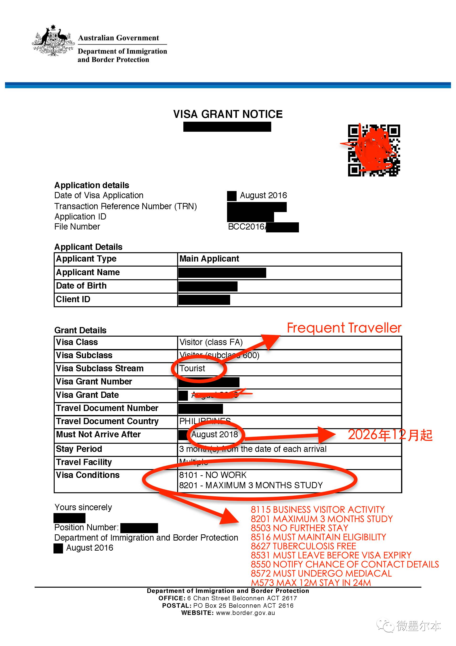 10年“常旅客”访客签证允许签证持有者在10年有效期内多次入出境,每次最多可在澳大利亚停留3个月!