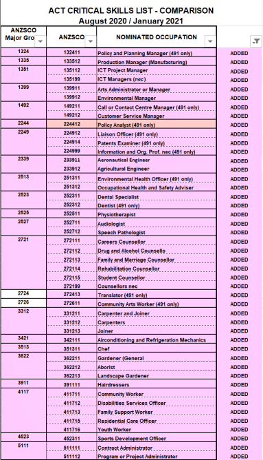 以上增加和踢出的对比可以看出,被踢出的职业,相对都是高skill level的管理职位,增加的职位以具有专业技能的技术人员、医护人员或职业技术人为主。其中大部分职业还是继续和“疫情紧缺”,“疫情复苏”密切相关。ACT政府对清单的变更,很好的体现了实时的本地需求,由此可见,短期内,服务于“疫情“,仍旧是移民的最大风向标。