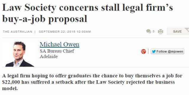 澳洲一间律师事务所欲向谋求第一份工作的毕业生收取2.2万元的费用,已被禁止启动。