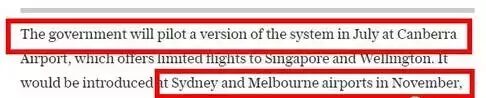 据多家媒体报道,自7月1日起正式在堪培拉机场率先实施试点,并将在今年11月份至年末推行到悉尼和墨尔本的机场,2019年3月份之前完成全澳的普及。