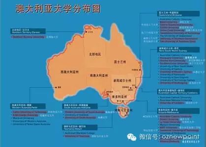 我们再来看看澳洲大学的分布图,方便同学们选择城市和学校,虽然大部分同学都偏爱悉尼和墨尔本,但是澳大利亚其它地区还是有很多不错的学校,并且每个学校强势专业也存在不同,大家选择学校时应根据自身情况而定。