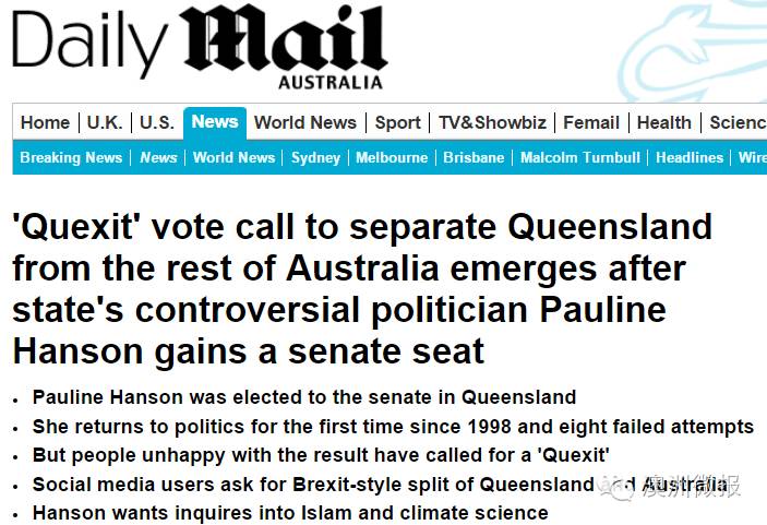 而那些讨厌她的人在社交网上呼吁公投,准备让昆士兰脱澳,就像英国脱欧一样。毕竟脱欧就像脱裤子一样,想脱就脱,那么脱澳的难度系数应该也没这么大。