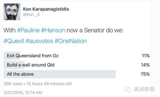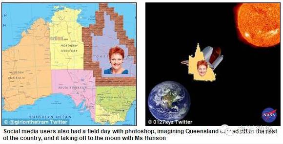 早些时候,澳洲著名喜剧演员Tom Ballard公开在Twitter上表示,要是Hanson大妈当选,我们就应该进行昆州脱澳的全民公投。万万没想到的是,大妈就这样当选了,于是这一呼吁得到了更多人的支持,甚至有网友将没有昆士兰的澳洲地图放到了网上。