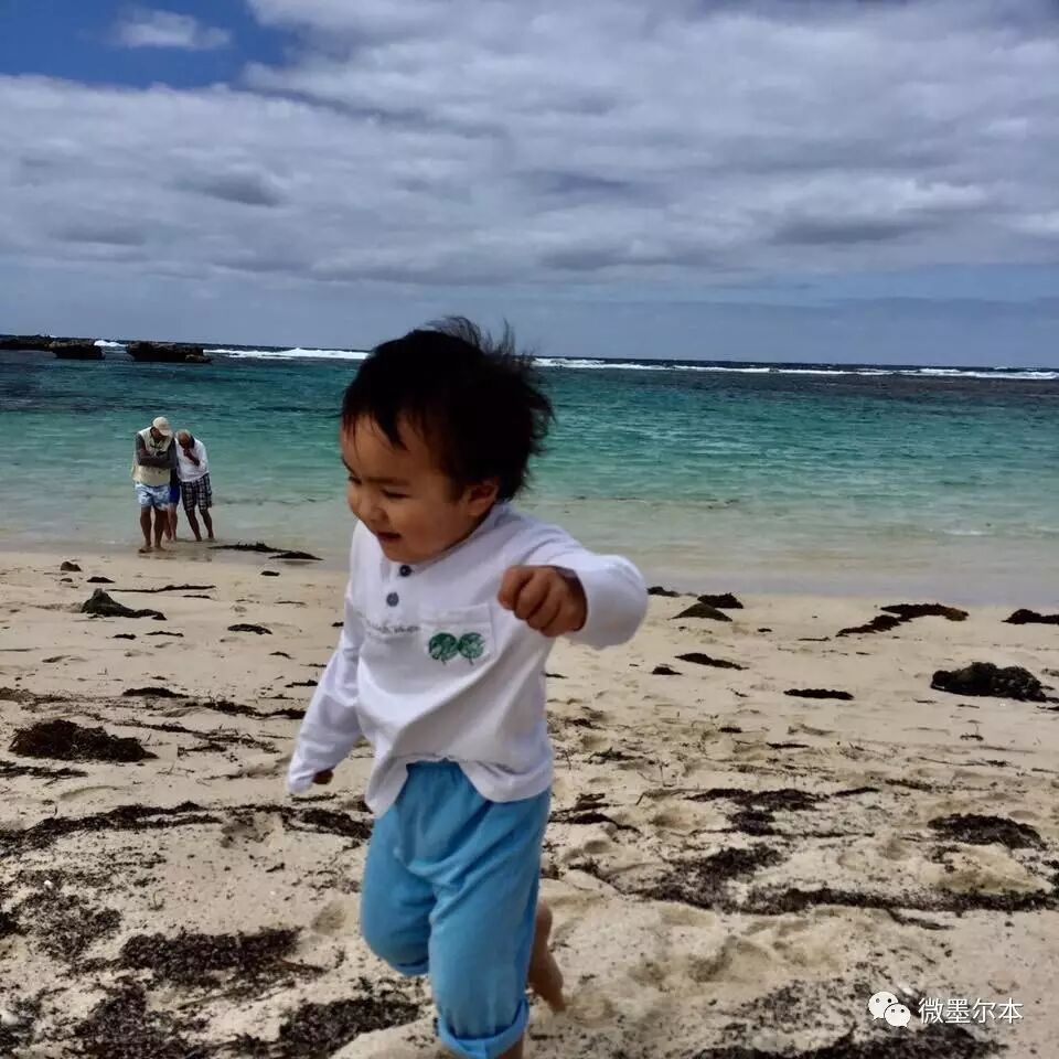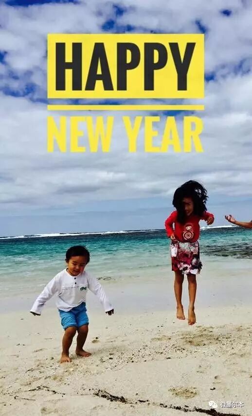 新的一年,Eric的妈妈在Facebook上po出了Eric和姐姐在海边玩耍的照片,还配文“新年快乐”!