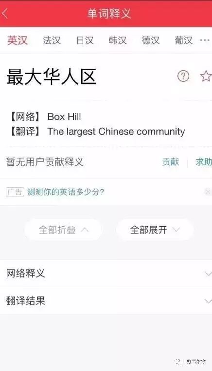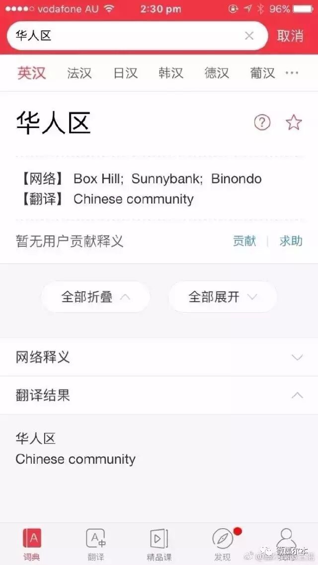 在有道词典查“华人区”,竟然出现了澳洲...