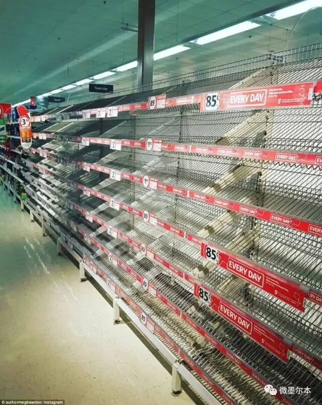 澳洲气象局提醒昆士兰等地居民至少储备3天生活所需物资,比如食物、水、衣物、药品、重要文件、充满电的广播和手电筒等。于是,大家早早就把超市都搬空了!