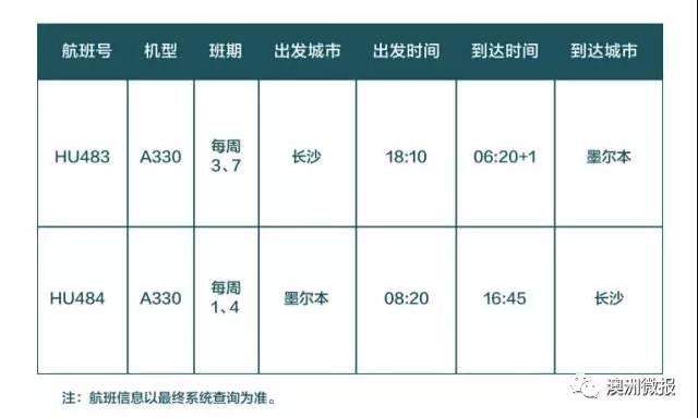 目前在西安-墨尔本和长沙-墨尔本两条航线直飞,每周各两班。