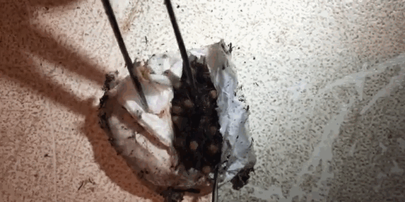 漏斗网蜘蛛的攻击性极强,想想看如果这家人的孩子不慎戳破了这颗蜘蛛卵,或者在没有发现的情况下这些蜘蛛破卵而出...
