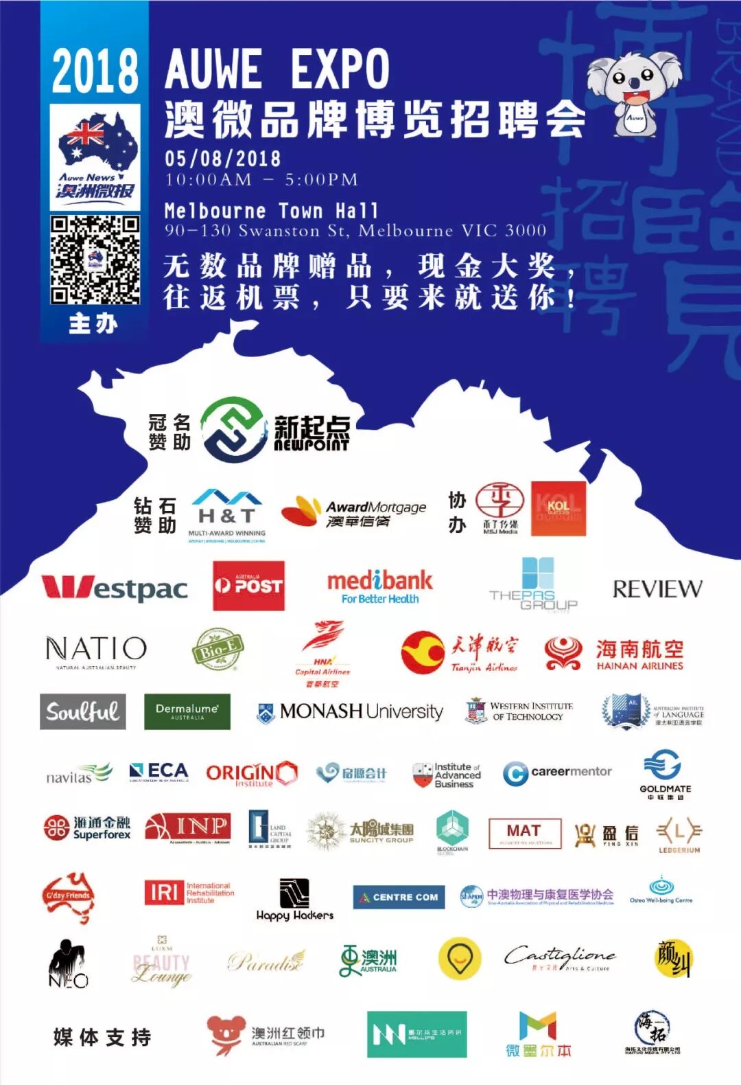 Auwe品牌招聘博览会,上百真实职位,数千代购礼品!众多澳洲名企,上市公司职等你来!