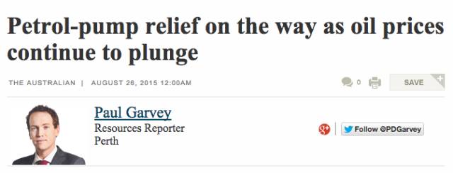 “这只是突显了市场如何波动。”他说。然而,国际油价的下跌部分被澳币对美元贬值所抵消,澳币对美元的汇率每下跌1仙,相当于每 升油价上涨0.9c,这反映了澳洲有多么容易受到全球性因素的影响。