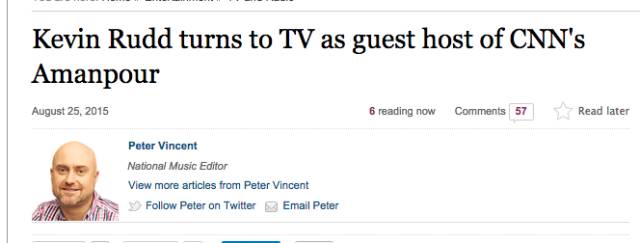 据报道,现年57岁的陆克文将在美国有线电视新闻网(CNN)全球时事栏目《阿曼普尔》(Amanpour)的主持人克里斯蒂安•阿曼普尔(Christine Amanpour)休假期间担任该栏目主持人!