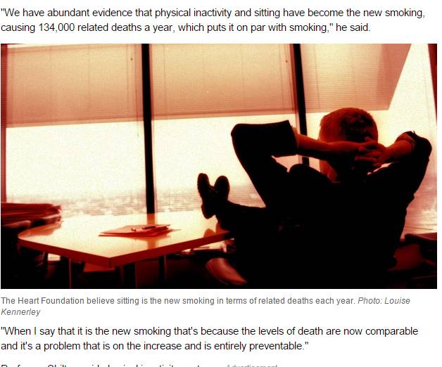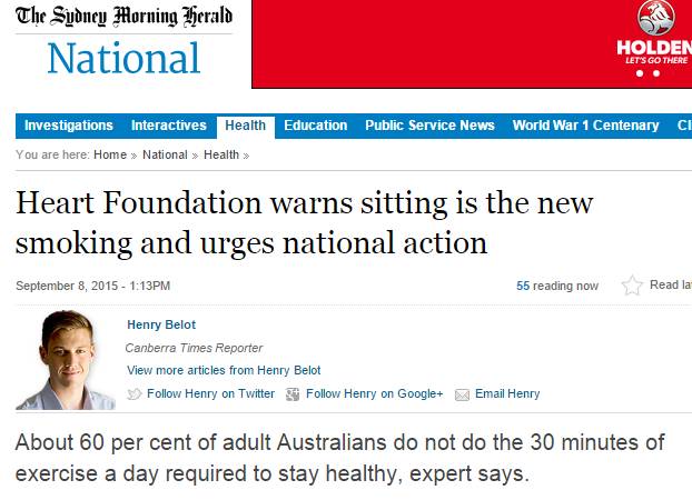 心脏基金会(The Heart Foundation)警告道,久坐和体力活动不足成为继吸烟以后的新“杀手”,每年夺走近1.4万澳人的生命。