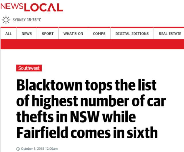 数据显示,Blacktown是新州盗车案发生率最高的地区,去年有703辆汽车失窃,低于四年前的930辆。