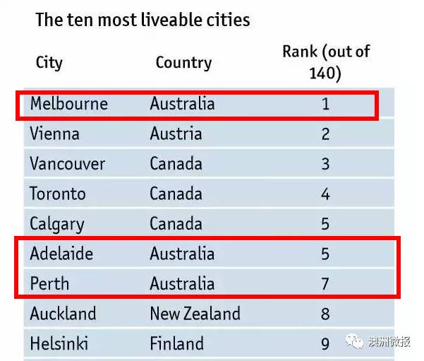在由经济学人智库(EIU)公布的2016年全球宜居城市的报告中,逆天的澳大利亚城市凭借3个席位抢占风头!