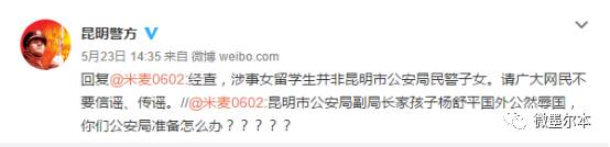 昆明警方为此专门出来辟谣:涉事女留学生并非昆明市公安局民警子女,请广大网民不要信谣、传谣。