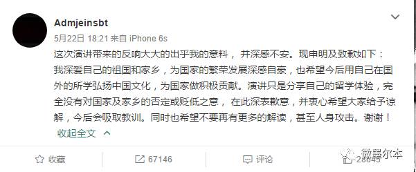 而在这场风波之中,哈佛大学的这一位名叫Jiang He(何江)的华人毕业生的演讲,与杨舒平毫无逻辑、甚至可以说是只为了谄媚的言论,形成了鲜明对比。