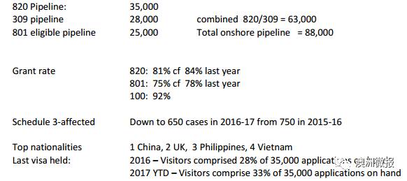 境内递交的申请人有三分之一持有旅游签证抵达澳洲后递交。