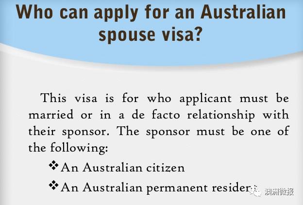 1.配偶移民的担保人必须是澳洲公民或永久居民。
