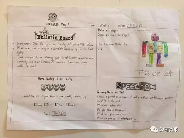 看完了澳洲小学生们的假期作业,我们不妨可以再看看澳洲小学生们的平时作业:
