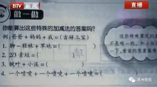 而数学作业则更多是一些比较具有趣味的题目,主要为这些刚入学的小学生们打下四则运算和数列的启蒙基础;