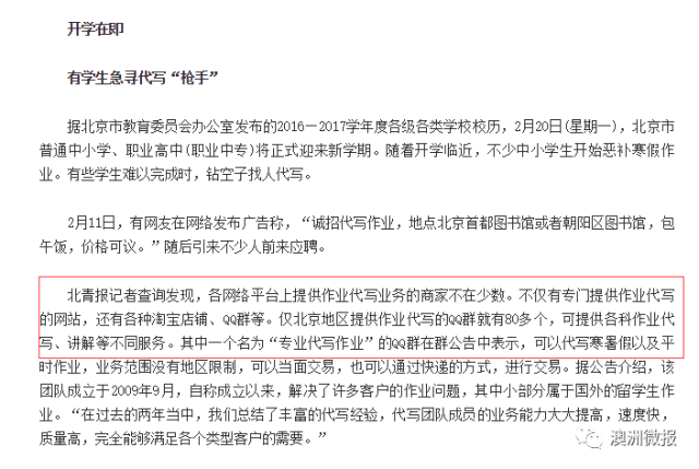 这也催生了一些“灰色产业”的产生:一些国内的平台打着“提供假期作业答案”的名号,公开提供代写假期作业及代做手抄报等服务,俨然成为了一个藏在灰色地带的产业链,引起了不少教育专家的担忧。