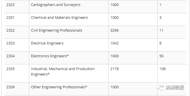 大家可以看到有些职业被加了星号,这里解释一下,移民局官网加星号表明是pro rata,具体依然是8大职业包括:会计、审计、计算机2611、2613和2631,电子工程2334、机械工程2335和其他工程2339