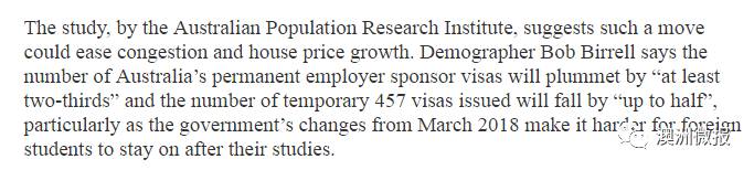据Australian Population Research Institute澳大利亚人口研究所的研究数据表明,这一举措可以大大缓解澳洲的交通拥堵和房屋价格的日趋上涨。