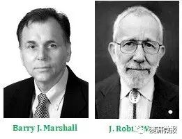 他们的名字叫Barry Marshall(巴里·马歇尔)和Robin Warren(罗宾·沃伦)。