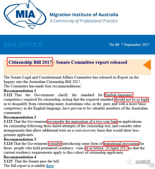 1. 拒绝了提案中提高英文标准至雅思6分的要求,明确说明加入澳洲国籍不需要英语达到如此高标准。