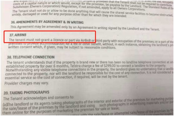 另外,目前许多中介公司也在合同上会标明“禁止挂在Airbnb出租”的行为,一旦违反规定,中介公司有权在之后续约时拒绝续租,甚至可能会把你列入澳洲房屋中介公司的“黑名单”上。
