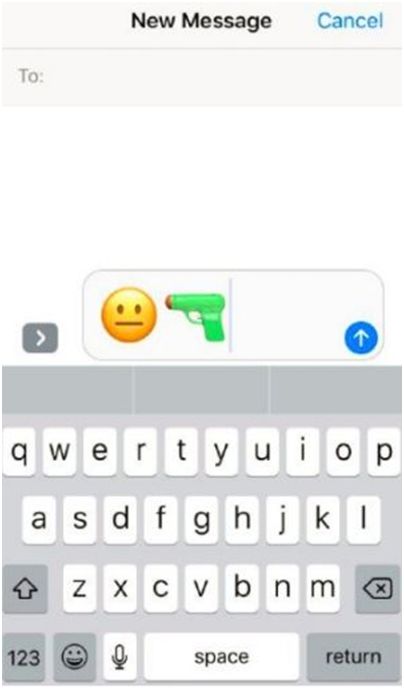 据警方的说法,Booth通过短信的方式给妹子发了两个emoji表情,其中一个是人脸的表情,另一个则是手枪的表情,组合到一起之后就变成了“用手枪指着头”,有非常明显的威胁含义。