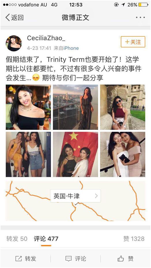 没有人知道Cecilia为融入当地文化做出了多少努力,因为人们看到的,是Cecilia一路进入了当地的顶尖精英私校Woodhouse Grove School,又一路披荆斩棘,杀入了牛津大学。