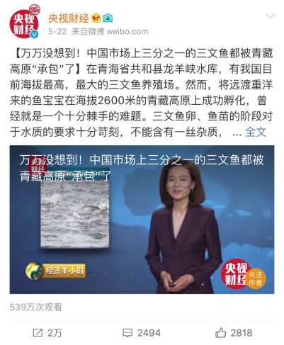 【万万没想到!中国市场上三分之一的三文鱼都被青藏高原“承包”了】