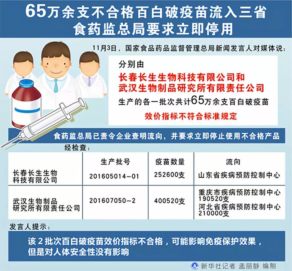 当时有65万余支不合格白百破疫苗流入市场后被召回,