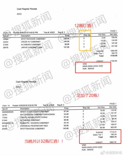 当天东哥一席人在餐厅的消费单据也被曝光;