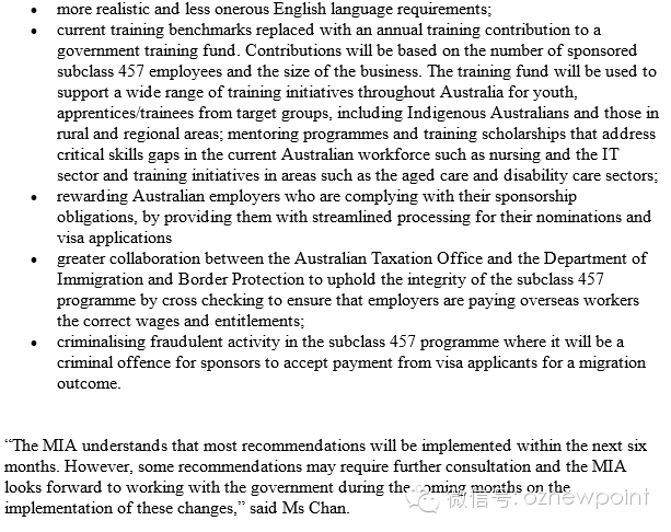 ·过去的培训标准A和B,将被新的付费培训基金所替代,这将由457担保雇主担保的雇员数量以及担保企业的规模来决定。这些费用将提供给产业部门用于满足培训需求。政府会协商如何实施。相信这将增强此项资金使用方式的完整性,避免产生佣金。
