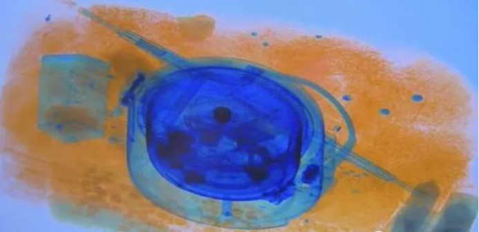 在将行李进行扫描时,工作人员发现了一堆不明物体。
