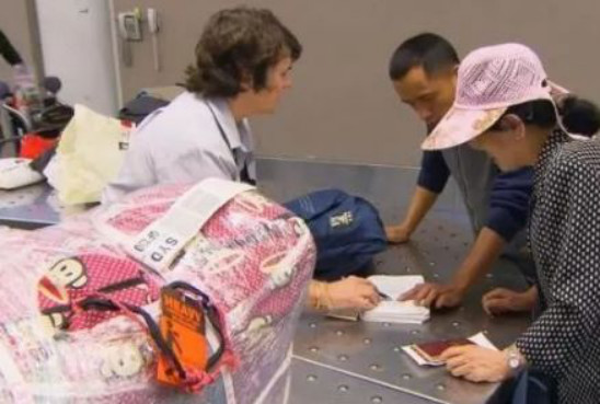 在进入海关检查时,大包小包的样子引起了工作人员的注意。