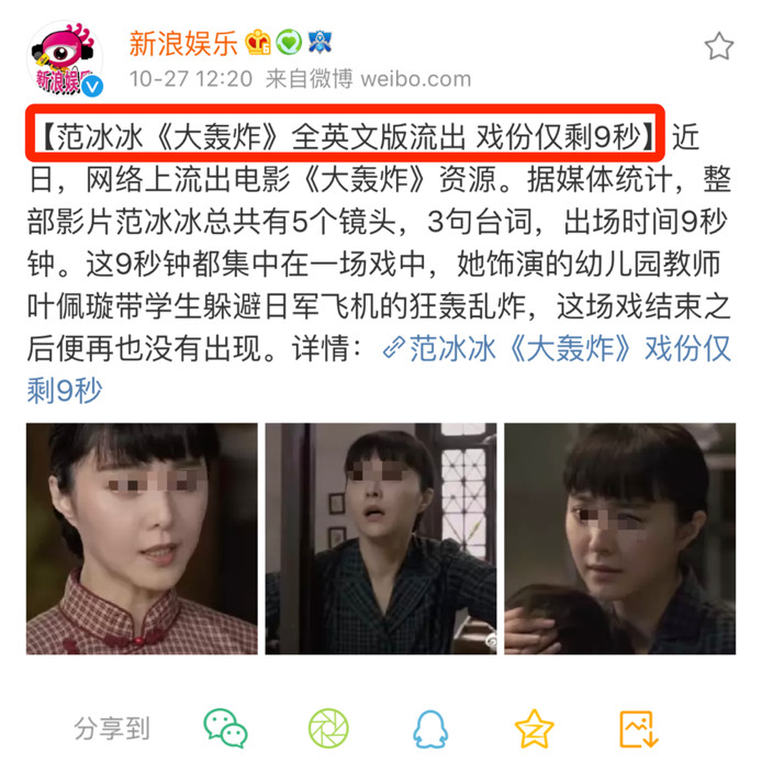 还曾一度为了避嫌,在海报和各类宣传文案中,删去了冰冰的名字,“以保平安”。