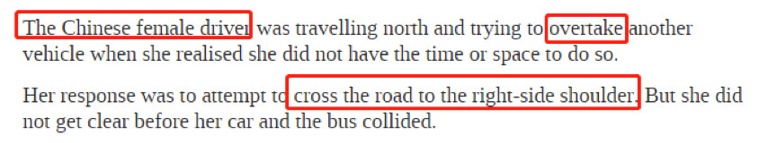那天,驾驶着涉事车辆的是一位中国女司机,她当时正沿着印度洋大道向北行驶,并且试图超车;