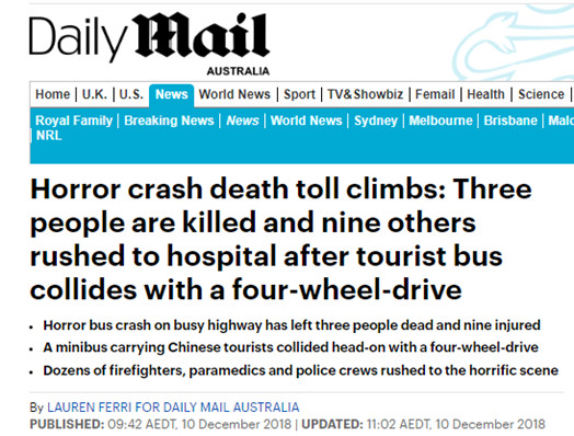 3人死亡!11人住院!载满中国游客小巴在澳遇恐怖车祸,车头撞烂,80公里路段全封