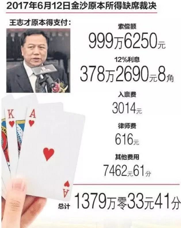 据悉,王志才对金沙赌场索要的6900万元的赌债并不承认,称自己已经通过中介把赌债还给了赌场。