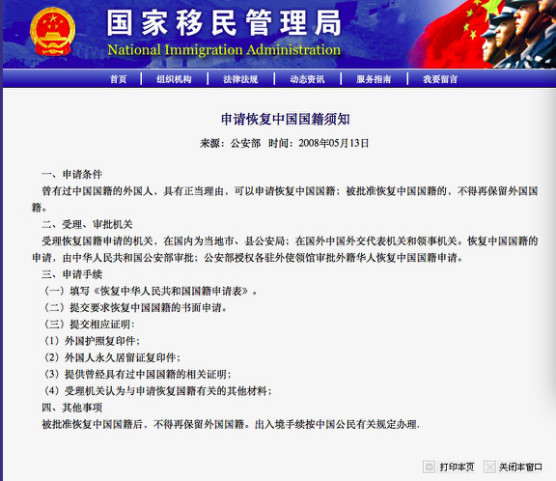 不过,申请人需提交相关信息,包括:《恢复中华人民共和国国籍申请表》、外国护照复印件、符合规定的照片,曾具有过中国国籍的相关证明等材料。