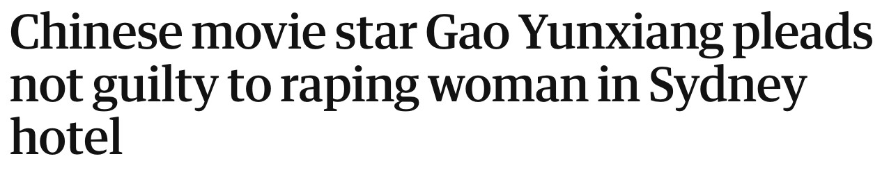 根据《卫报》此前的报道,在今年一月的开庭上,高云翔对在悉尼酒店强奸一案表示不认罪。