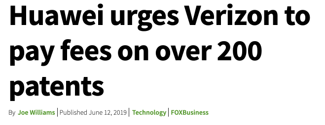 据悉,华为从今年2月开始,就给美国通信运营商威瑞森(Verizon)公司以及其他20多家供应商发去了信件,要求这些美国公司为其所使用的超过230项专利支付费用,而专利费预估——