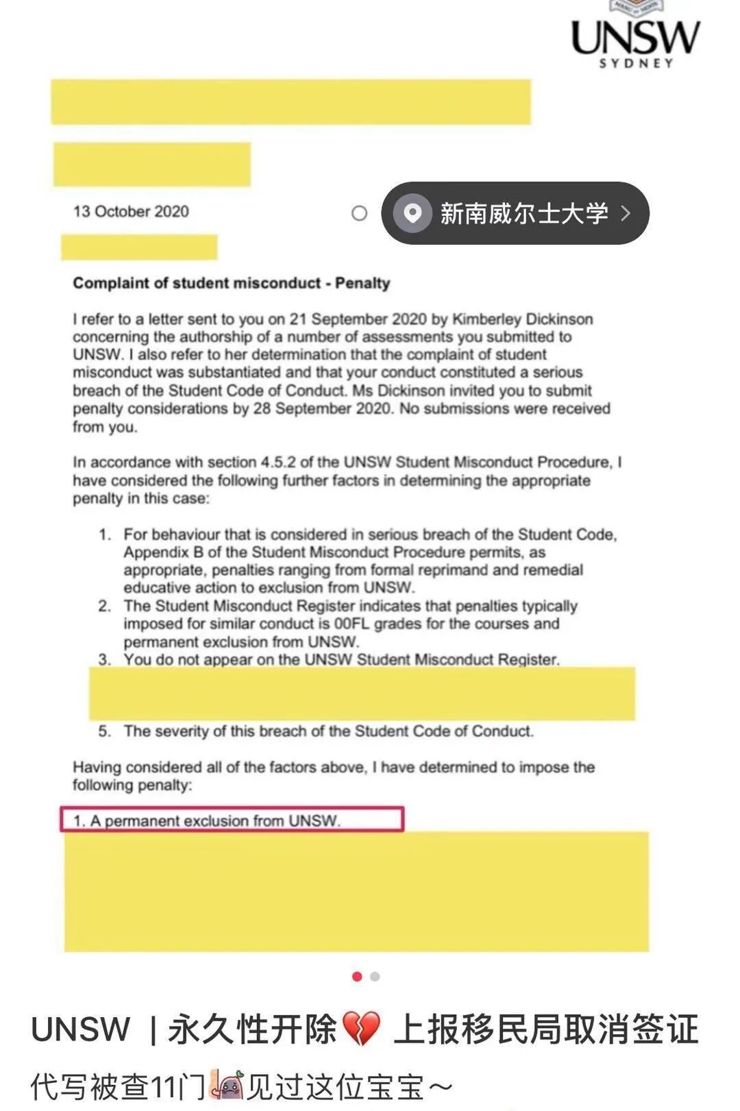 结果就是被开除学籍,并且上报移民局取消签证。