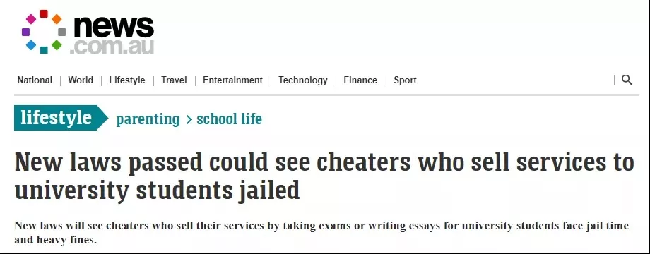今年的9月5日,澳洲政府正式出台了一项法律:高等教育学术作弊服务将面临最高两年的监禁,或最高10万澳元的罚款。