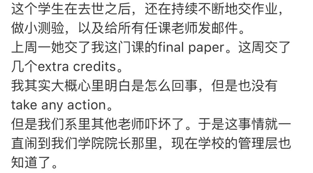 整件事情令人毛骨悚然,不停收到去世学生作业的老师们也都吓坏了,最后事情还闹到了学院院长那里,连学校管理层都知道了。